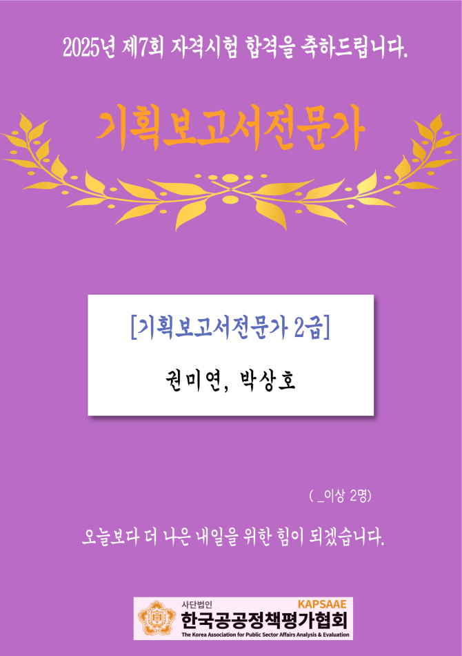 2025년 제7회 기획보고서전문가 합격자 발표 및 보수교육 안내