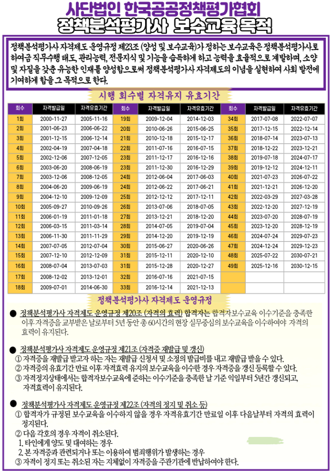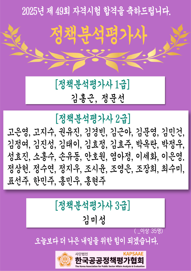 2025년 제49회 정책분석평가사 합격자 발표 및 보수교육 안내